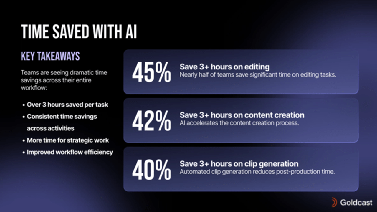 まず業務効率化の視点での調査です。編集・コンテンツ制作・クリップ生成とカテゴリーが分けられているのですが、コンテンツ制作が「企画」の部分を指しているのではないかと思われます。