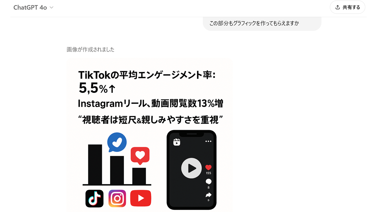 ChatGPTのみならず、様々な画像生成AIでは「文字情報をうまく画像化できない」という課題があり、図説や文字の入ったロゴマークをうまく処理できない課題がありました。しかし今回ChatGPTに実装された機能では、文字情報と画像情報の意味づけを考えて出力される機能が実装されており、Deep Resarchで取得した精度の高い情報をそのまま図説にするといったことも可能になってきています。