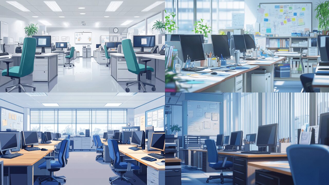 • 社屋の背景や制服の再現は手描きで対応し、背景の一部は生成AIで補完