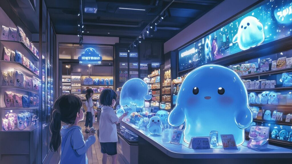 この動画はスマービーAIのサービスで制作した動画です。「生成AIによって作られたキャラクターが世界を席巻する」というIPキャラクタービジネスの未来を描いています。